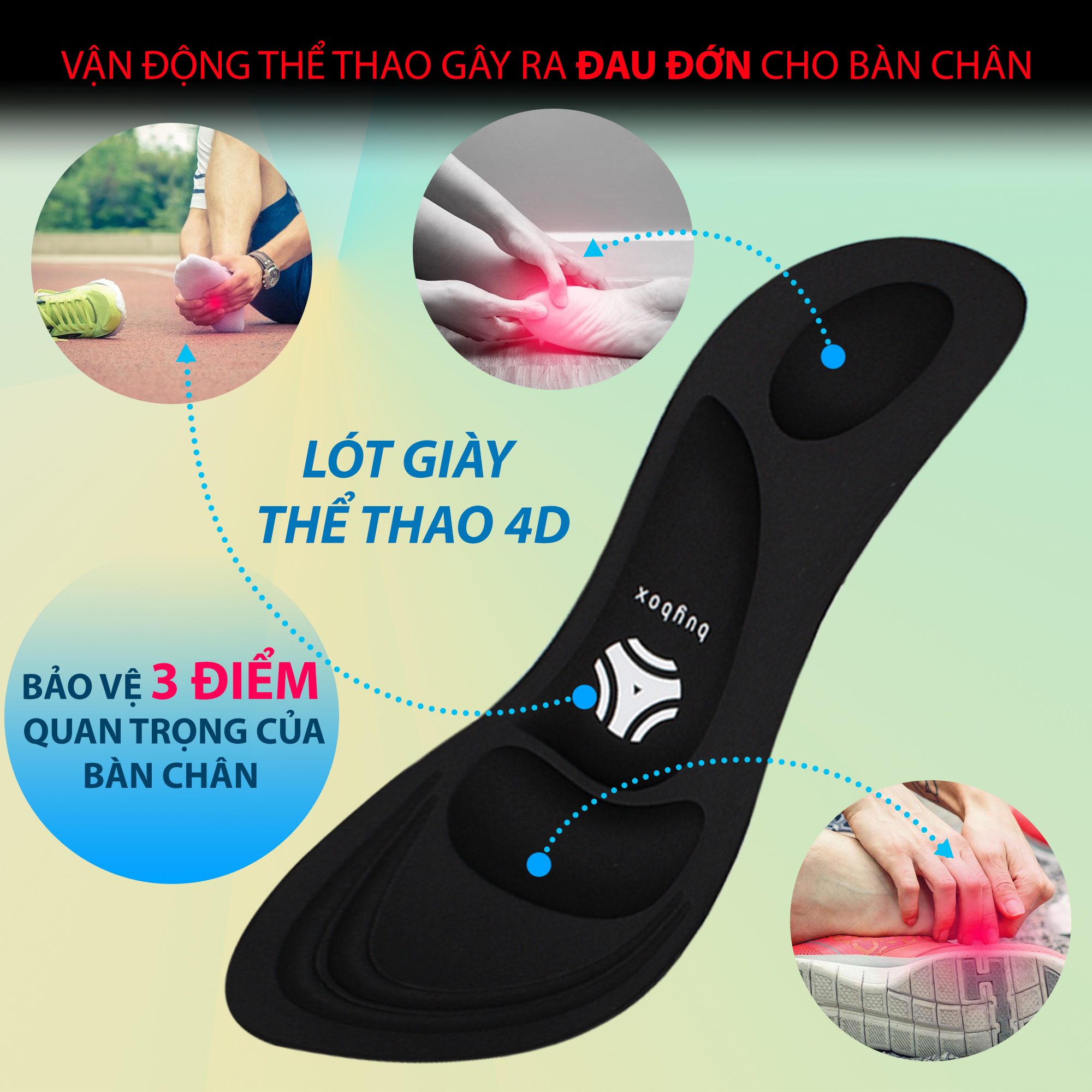 LÓT GIÀY THỂ THAO BUYBOX CÓ THIẾT KẾ 4D LẤP ĐẦY PHẦN LÕM CỦA LÒNG BÀN CHÂN