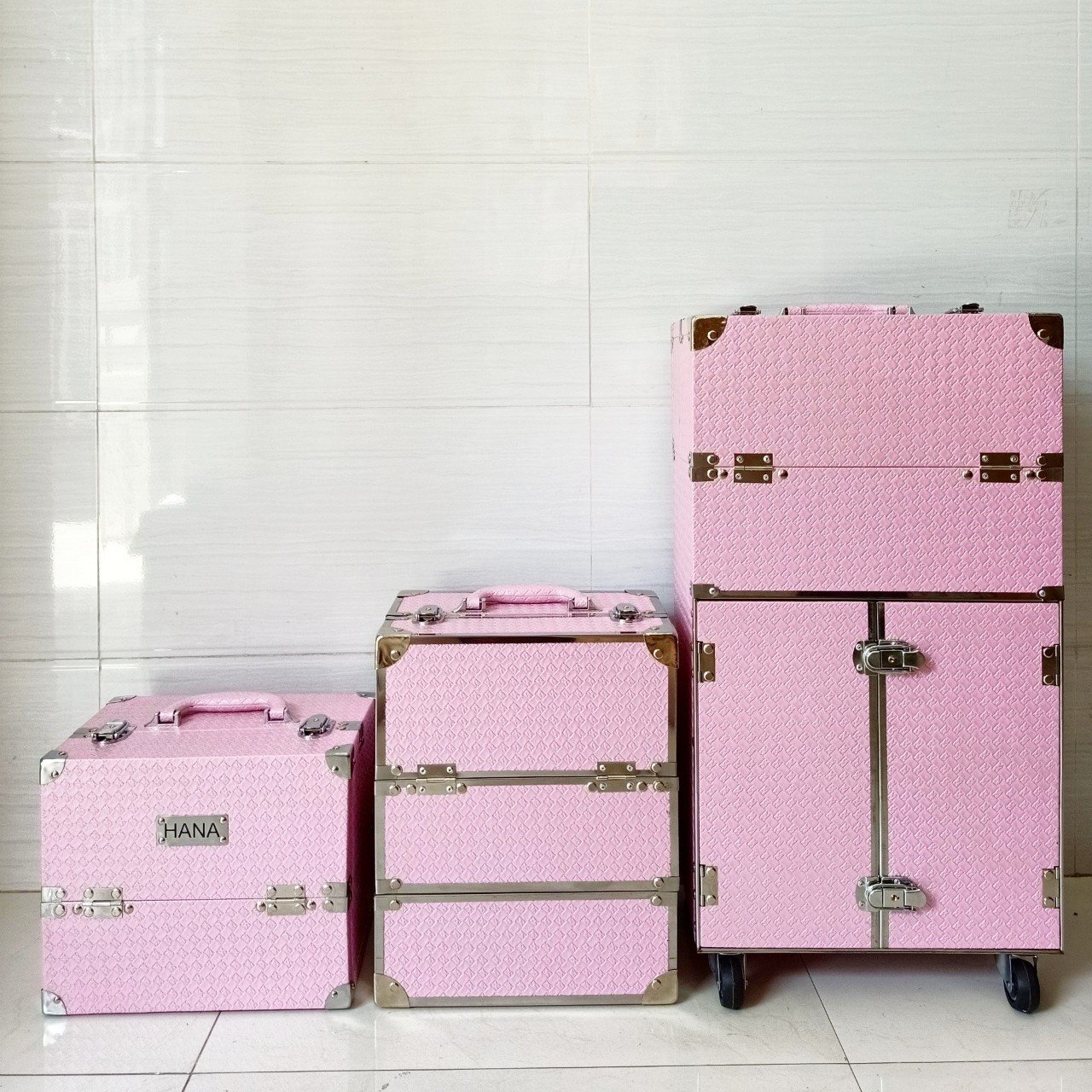 - 1 Cốp vali kéo Hana viền cạnh inox, nhiều ngăn đựng mỹ phẩm, dụng cụ phun xăm, nối mi, nail, máy hơ gel trang điểm chuyên nghiệp size 36x22x64 (cm)