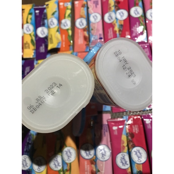 CRYSTAL LIGHT ( original nhiều vị ) Làm ngọt bằng đường ăn kiêng nên bột pha thức uống vị trái cây Crystal Light phù hợp với mọi đối tượng, kể cả người ăn kiêng low carb và người bệnh tiểu đường. Các bạn có thể thoải mái thưởng thức các loại mùi vị thơm ngon của crystal light mà không lo bị nóng và tăng cân như những loại nước ngọt khác trên thị trường. Có nhiều hương vị để các bạn lựa chọn : pink lemonade, chanh, trà đào, dâu & cam & chuối, cherry & chanh & việt quất, mocktails, trà xanh và xoài, nho, dâu tằm, dâu tằm và chanh, lựu và cherry... Cách dùng: có thể tăng giảm liều lượng nước pha từ 2000ml đến 2500 ml, có thể cô đặc pha cocktail, mojito. Quy cách đóng hộp : hộp 5-6 gói tuỳ vị Date: 2022 trở lên