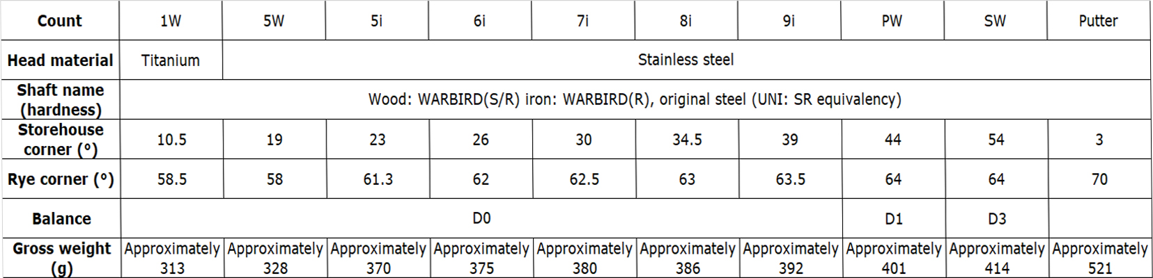 Callaway Warbird gồm những loại gậy khác nhau với độ loft khác nhau giúp giải cứu người chơi ra khỏi những vùng khó nhất như bãi cát, cỏ dài,