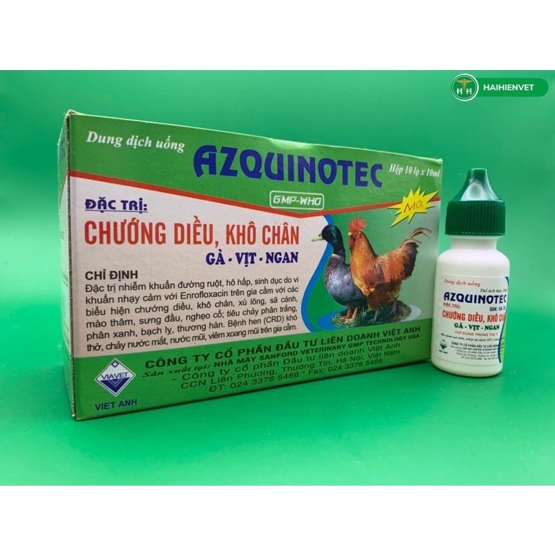 Giới thiệu 10 lọ AZQUINOTEC 10ml - chướng diều, khô chân - chuyên dùng cho gà, vịt, ngan, chim cút