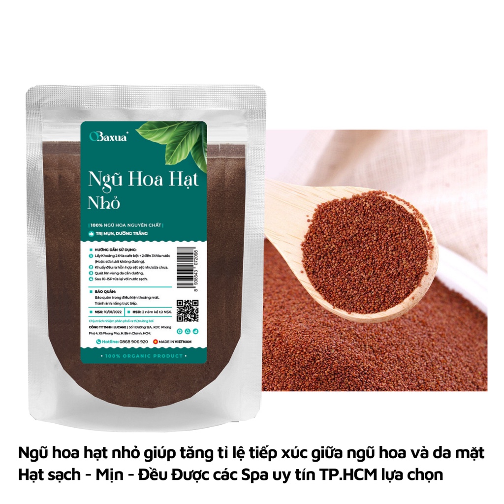 Lưu ý khi sử dụng : • Hạt ngũ hoa phù hợp cho mọi loại da, đặc biệt là da mụn • Hạt ngũ hoa với thành phầm 100% thảo mộc tự nhiên nên trường hợp kích ứng da hầu như không có nhưng nếu trong quá trình sử dụng da bạn không phù hợp với sản phẩm này thì bạn nên ngưng sử dụng và dùng sản phẩm khác phù hợp hơn với da bạn.