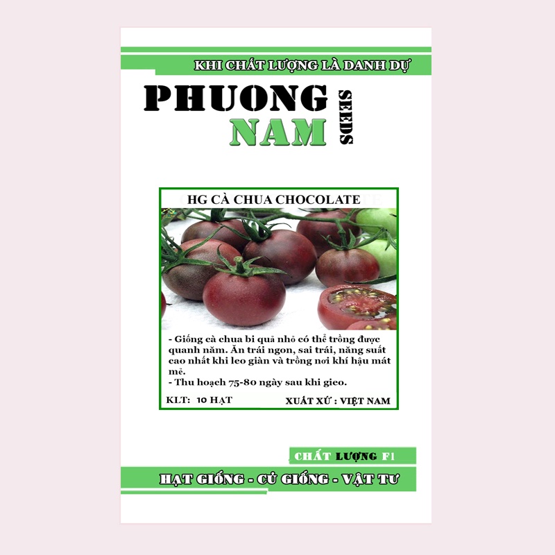 - Mã sản Phẩm : Hạt giống cà chua Chocolate - Loại hoa/cây : Hạt giống cà chua chocolate, cà chua cherry chocolate, hạt giống cà chua - Tên tiếng anh: Chocolate cherry tomato - Màu sắc: Nâu chocolate - Số hạt/gói : 10 hạt - Phủ hạt khi gieo: 0,5cm .Dùng bình xịt phun sương tưới đẫm cho hạt bám vào đất - Thời gian nảy mầm :7-15 ngày - Tỉ lệ nảy mầm : >90% - Tác dụng : Cây làm cảnh , để ăn. - Xuất xứ : Việt Nam - Khí hậu trồng : Xứ nóng ,xứ lạnh - Thời điểm gieo trồng : Quanh năm - Thời gian thu hoạch: 75-80 ngày sau khi gieo - Chiều cao cây :Leo ,bò - Loại cây :Hằng năm https://hatgiongphuongnam.com/san-pham/hat-giong-hanh-la-99.html