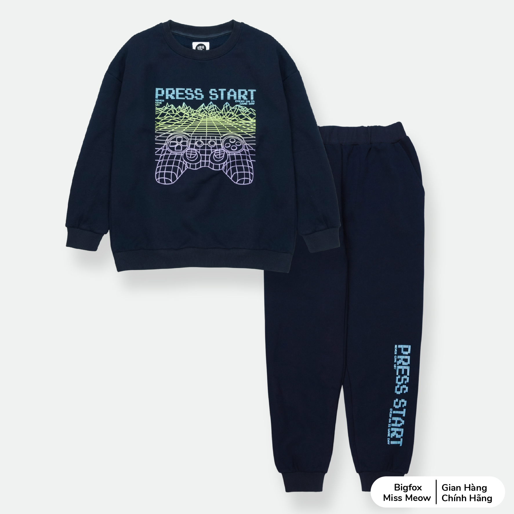 (12-15 tuổi) Bộ nỉ bông cho bé trai Bigfox Miss Meow size đại, bộ thu đông bé trai Press Star size trẻ em 12,13,14,15