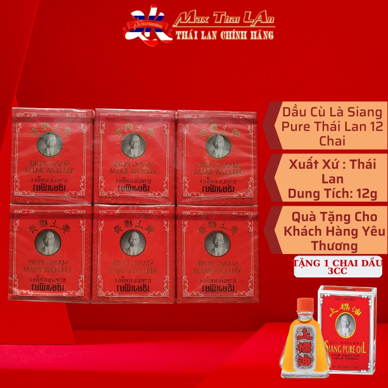 Giới thiệu 12 Chai Dầu Cù Là Ông Già Đỏ Siang Pure Oil Balm 12g - Thái Lan Hàng Chuẩn