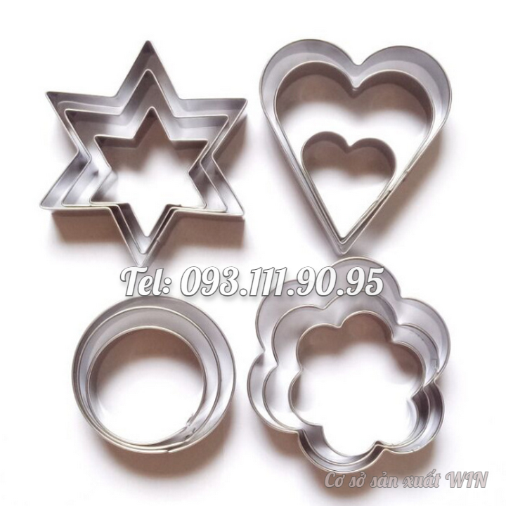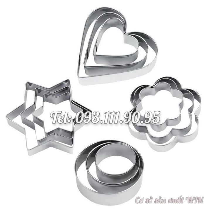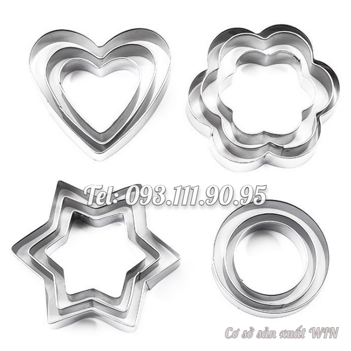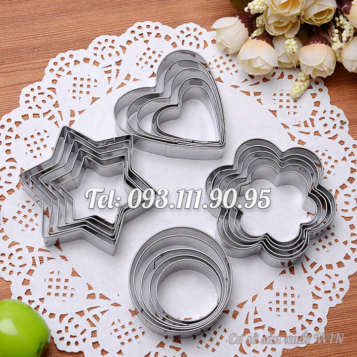 Bộ 12 khuôn hình tim, hoa mai, ngôi sao và hình tròn làm bánh, Cutter, Fondant inox – Mã số 1256