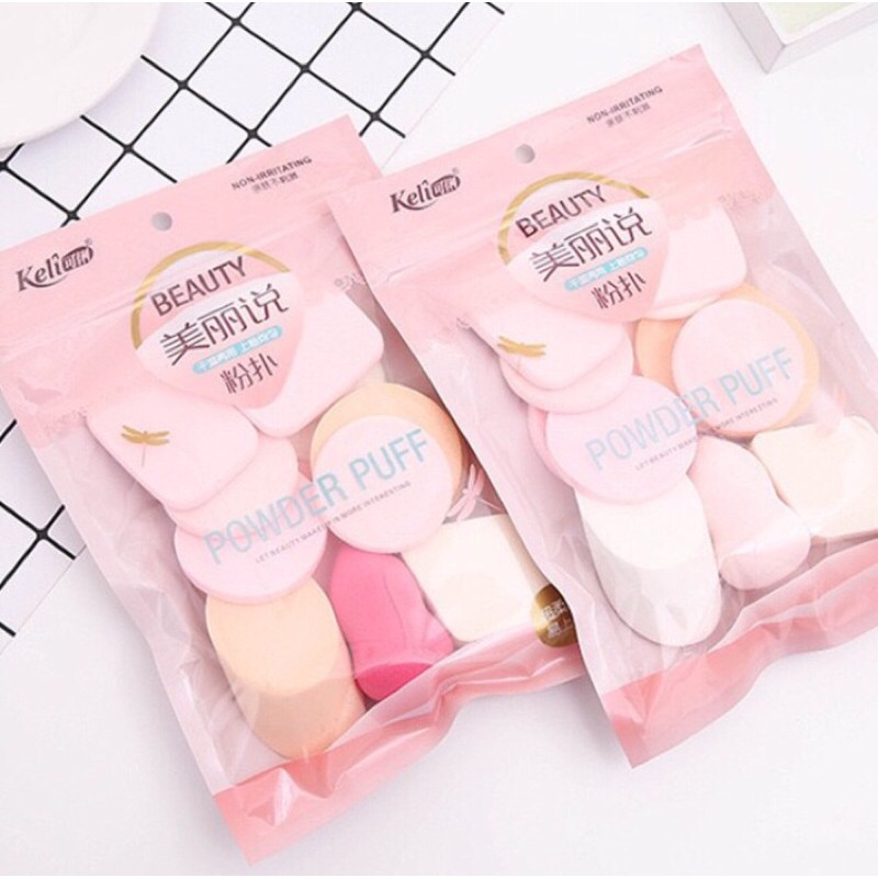 Bộ 13 bông mút trang điểm Keli siêu rẻ và siêu tiết kiệm - 1 gói 13 miếng