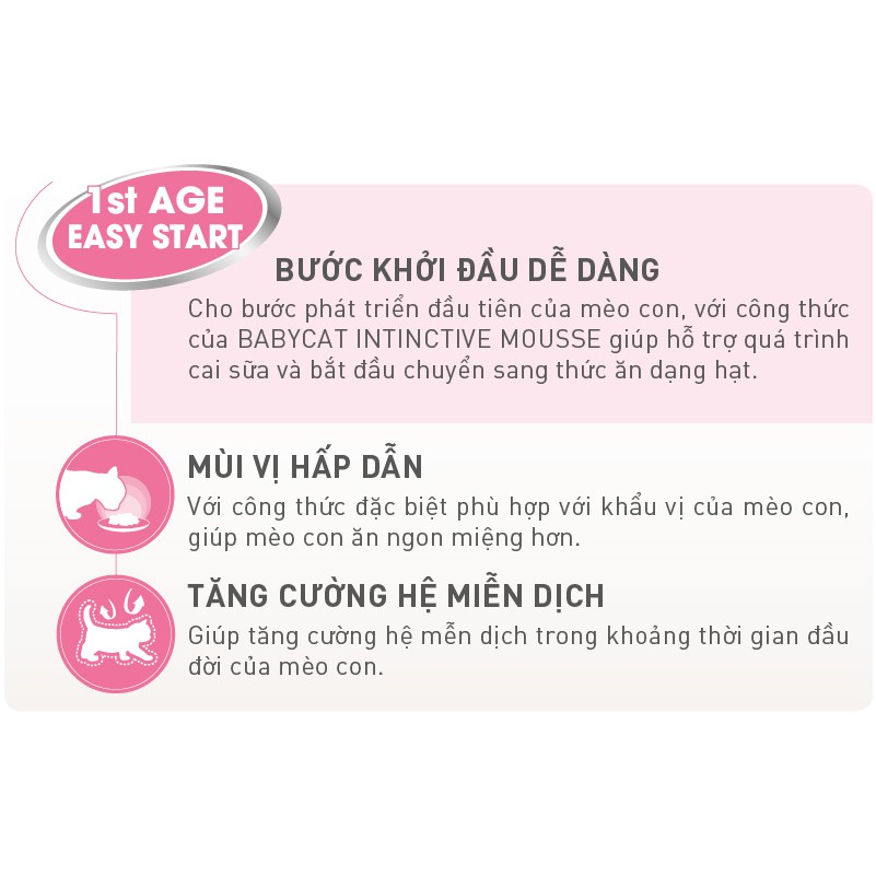 Pate cho mèo mẹ và mèo con ROYAL CANIN Mother & Babycat Ultra Soft Mousse chế biến phù hợp với mèo con từ 1 – 4 tháng thuổi. Mèo mang thai hoặc mèo cho con bú. Có tác dụng vô cùng đặc biệt với mèo cưng. Hỗ trợ hệ thống miễn dịch của mèo con với một hỗn hợp độc quyền của chất chống oxy hóa. Lượng vitamin cần thiết để giữ sức khỏe và phát triển mạnh mẽ. Thúc đẩy phát triển hệ thống tiêu hóa khỏe mạnh với protein tiêu hóa cao và prebiotics. DHA để xây dựng một bộ não linh hoạt. THÀNH PHẦN Thịt và dẫn xuất từ động vật, ngũ cốc, dầu và chất béo, dẫn xuất từ thực vật, sữa và dẫn xuất từ sữa, khoáng chất, men, các loại đường. Phụ gia dinh dưỡng: Vitamin D3, E1 (Sắt), E2 (I ốt), E4 (Đồng), E5 (Mangan), E6 (Kẽm). Chỉ tiêu chất lượng: Protein thô (min) 10.5%; Béo thô (min) 4%; Xơ thô (max) 3%; Khoáng tổng số (max) 3% HƯỚNG DẪN SỬ DỤNG: in trên bao bì, điều chỉnh lượng ăn tùy theo giống, cân nặng và hoạt động của thú nuôi để duy trì trọng lượng và cân nặng lí tưởng. Nước sạch phải luôn có sẵn mọi lúc. Hướng dẫn sử dụng: cho ăn hàng ngày hoặc thưởng cho cún Hướng dẫn bảo quản: nơi khô ráo, thoáng mát. Đậy kín sản phẩm sau khi mở túi. Thông tin cảnh báo: chỉ dùng được cho chó. Không dùng cho người. Định lượng: 195g Địa chỉ: 112 Nguyễn Cửu Vân - P.17 - Bình Thạnh - HCM ♥️ 0903 673 297