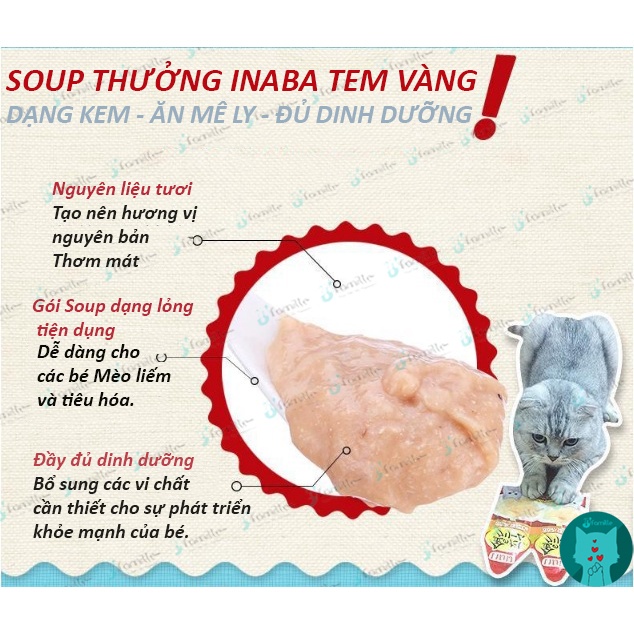 Giới thiệu [1 GÓI ĐƠN]Thức Ăn Ướt Dạng Kem JFamille, Soup Thưởng Tem Vàng INABA, Hỗ Trợ Tiêu Hóa, Giảm Mùi Nước Tiểu. JF104