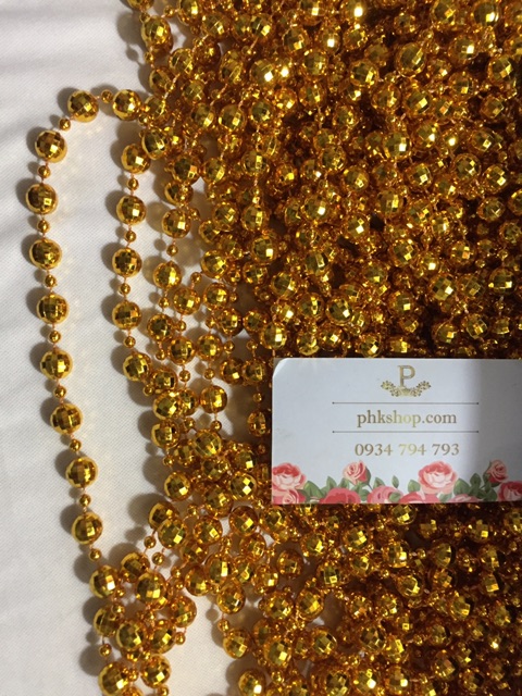 Giới thiệu 1m chuỗi hạt trang trí rèm, màn, cây cảnh... hạt châu vàng 10li lấp lánh