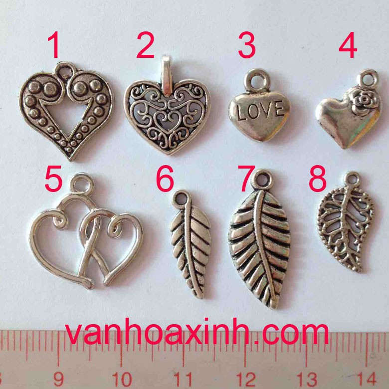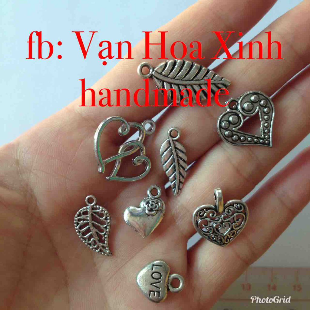 Charm trang trí vòng tay handmade, shop có màu sáng hoặc màu đồng, chất liệu sắt xi.