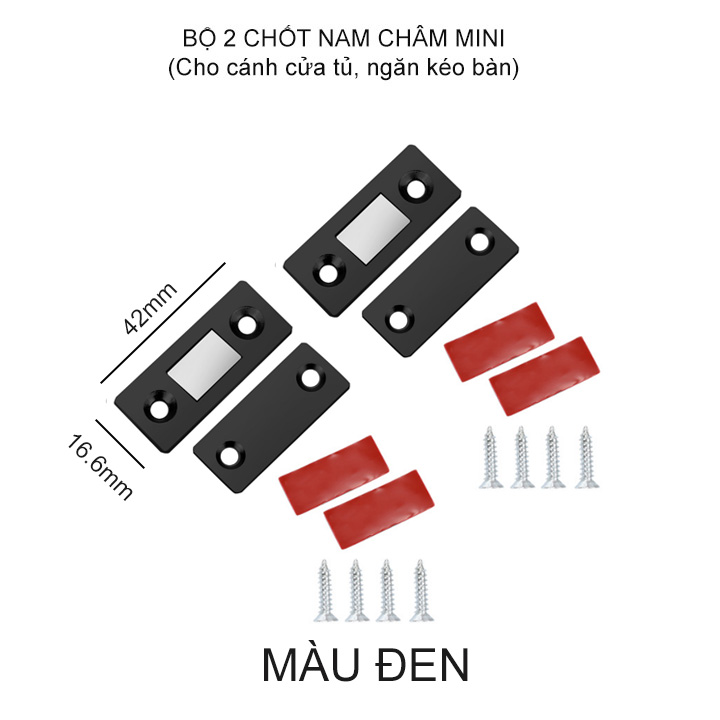Bộ 2 chốt nam châm mini cho cửa tủ, ngăn kéo bàn, cửa trượt với nam châm lực hút mạnh có băng dính 2 mặt và vít