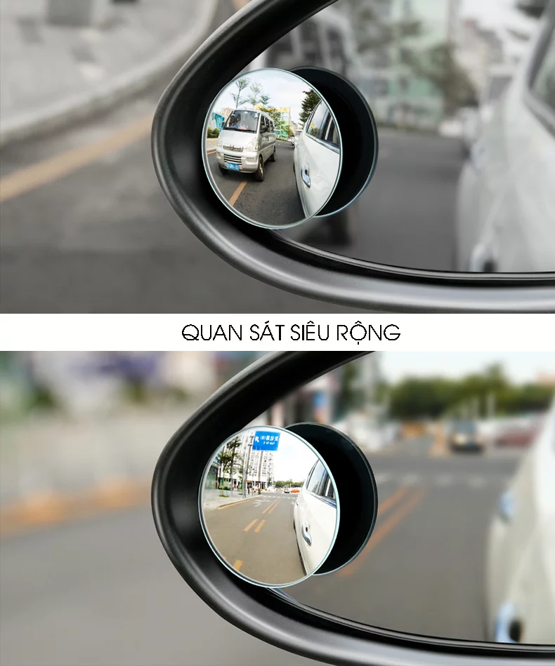Góc chết điểm mù sẽ không còn là nỗi lo của tài xế nữa. Một bộ sản phẩm bao gồm 2 gương cầu lồi lắp 2 bên gương chiếu hậu.