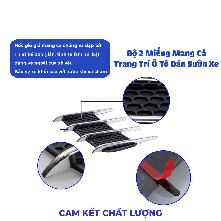 Giới thiệu Bộ 2 mang cá loại lớn trang trí 2 bên sườn xe hơi ô tô mô phỏng cửa gió chống va đập - chống xước xe
