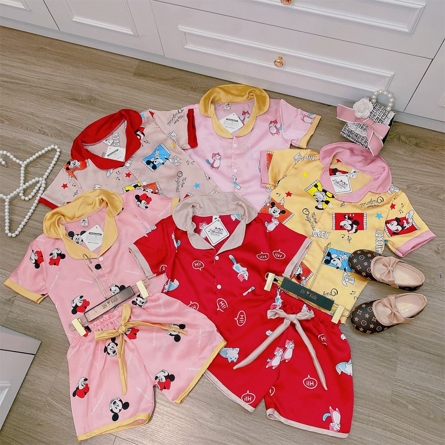 [20KG-42KG] Bộ Mặc Nhà Pijama Lụa Phối Nơ Cao Cấp Tay Cộc Cho Bé Gái - Chất Liệu Lụa mềm Mịn Thoáng Mát