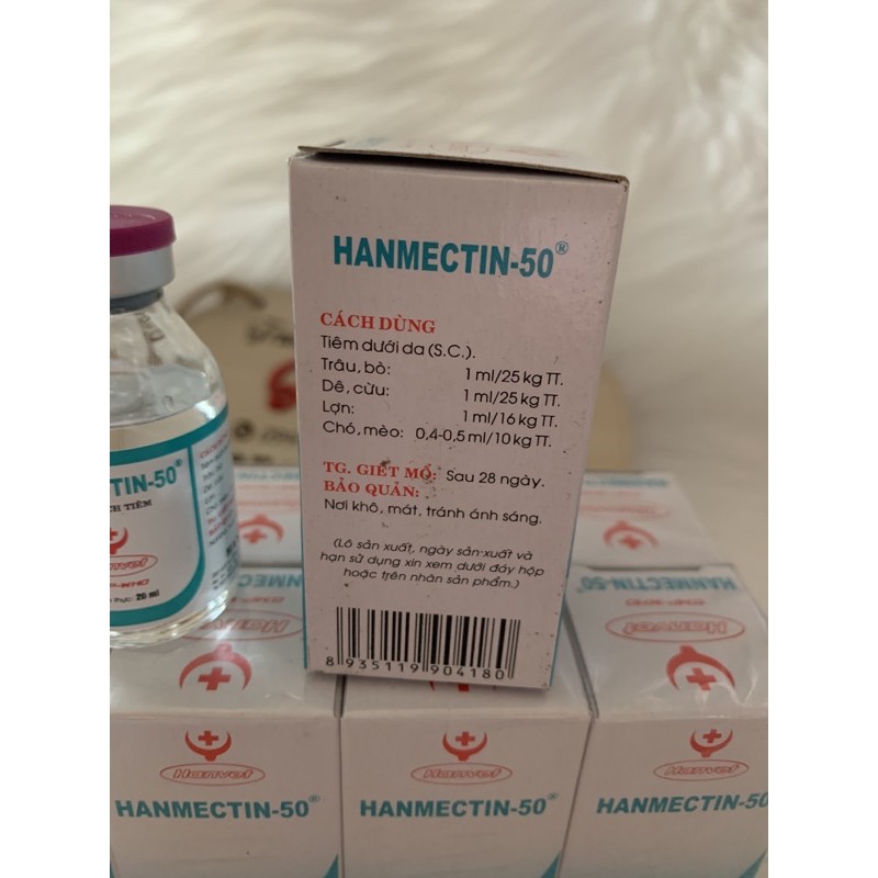 20ml Hanmectin 50 - giun, ghẻ, rận, bọ chét trên chó, mèo, heo, trâu, bò, thỏ, dê, cừu