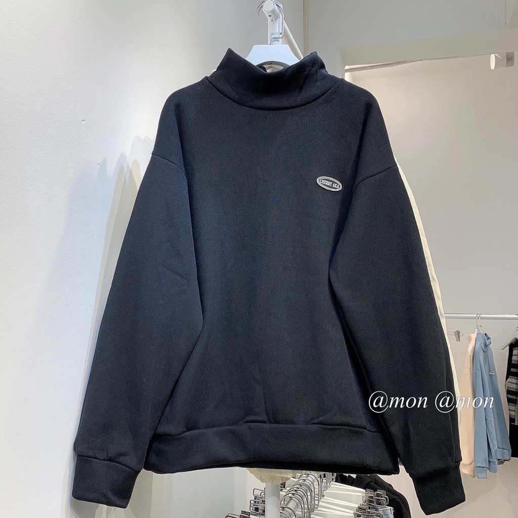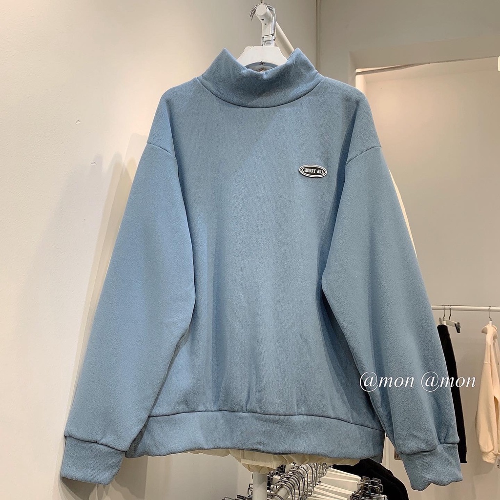 Giới thiệu 210713 Áo sweater cổ 3 phân nỉ tăm lót nhung dày ấm, áo nỉ nữ cổ cao ulzzang
