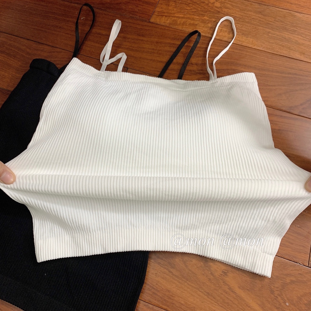 Cbac hỏi bra 2 dây e về hàng cho cbac mix bên trong với cardigan nhé ạ 💋💋 về 100 chiếc chất thun tăm co giãn cực thích, dày dặn lắm ạ..2 màu cơ bản dễ phối Trắng/Đen.. ‼️Chất thun tăm co giãn, có đệm ngực, freesize <60kg.