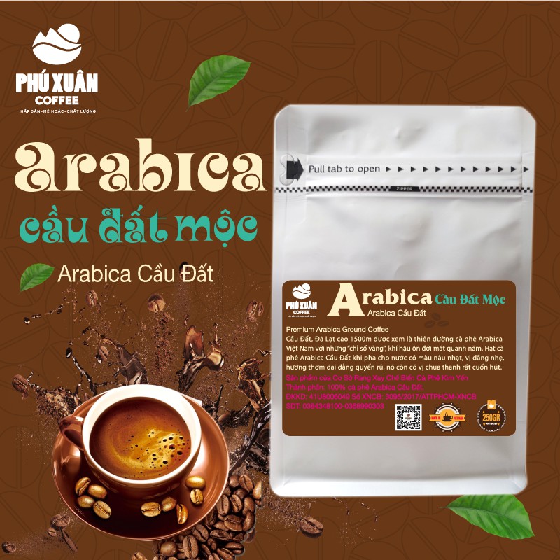 Giới thiệu 250gr Cà Phê Arabica Cầu Đất Mộc Hạt Bột Phú Xuân Coffee - Cafe rang xay pha phin pha máy