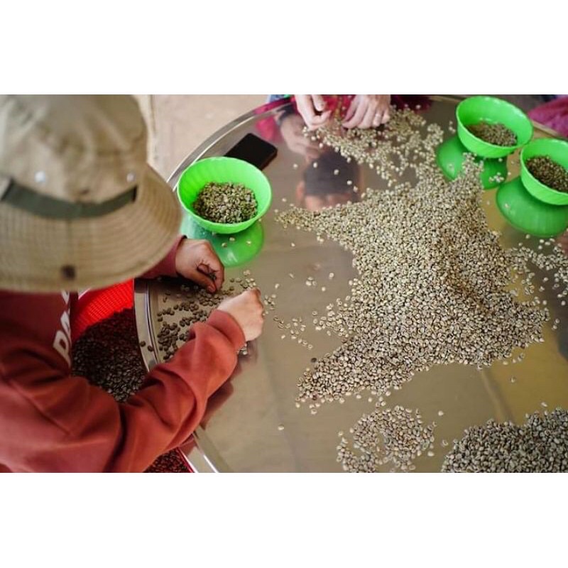 Phân loại- Trồng- Thu hoạch- Rang- Bảo Quản và Tách hạt lỗi - Sản phẩm Phân loại. Trên thị trường đang tiêu dùng 2 dòng cà phê chính, là #Robusta và #Arabica. Việt Nam chúng ta trồng và tiêu thụ robusta nhiều hơn arabica.( độ cao thấp hơn 800m từ mực nước biển phù hợp trồng robusta, arabica thường trồng từ độ cao 900m trở lên Vùng trồng: Robusta được trồng nhiều ở Đăk Lăk, Gia Lai, Đắc Nông, Kon Tum, Lâm Đồng... Arabica được trồng nhiều ở Lâm Đồng, Măng Đen, Khe Sanh, Sơn La… Trong đó Khe Sanh là vùng có hương vị vô cùng nổi trội, xưa kia được người Pháp khau thác và mang về nước rồi làm thành dòng Arabica Du Tonkin thượng hạng .Thu Hoạch: Đây được xem là khâu quyết định phần lớn chất lượng của cà phê thành phẩm. Cách làm truyền thống: Nông dân sẽ thu hái đại trà, xanh chín đều hái. Khi chín, thường cà phê sẽ chín không đều, có cành chín trước, có cành chín sau. Nếu hại lựa sẽ tốn thời gian. Và chi phí nhân công cũng tăng lên rất cao nếu hái lựa. Sau khi hái xong sẽ được tập kết về sân phơi.( Có thể phơi sân đất, phơi trên bạt, hoặc phơi sân xi măng.) Cách làm này giúp nông dân thu hoạch nhanh và gọn vườn, chi phí nhân công thấp hơn hái lựa. Nhưng nhược điểm là chất lượng cà phê nhân thấp. Ngoài ra trong quá trình phơi có thể bị mốc nếu gặp mưa dài ngày mà không xử lý được. Nếu biết uống cafe mà nhân bị mốc thì chắc bạn sẽ không thích rồi nhỉ. Cách làm mới đang được áp dụng để sx cà phê Đặc Sản, và cà phê chất lượng cao: Cách làm này yêu cầu hái lựa trái chín, hoặc dùng máy tách màu để chọn chái trín, sau đó trái sẽ được lên men( gần giống như lên men nho để làm rượu vang), rồi được phơi trên dàn trong nhà kính. Như vậy quá trình này mình sẽ kiểm soát chất lượng cà phê nhân tốt hơn, phát huy được hương vị tự nhiên của cà phê. Tuy nhiên chi phí nhân công tăng gấp 2,3 lần, chi phí đầu tư nhà màng và máy móc cũng rất tốn kém. Nên cũng rất nhiều người e ngại làm theo phương pháp này.Sau khi phơi khô, cà phê sẽ được bảo quản còn trong vỏ thóc hoặc vỏ quả khoảng 3 tháng rồi sẽ bắt đầu được tách vỏ để rang. Sau khi tách vỏ và sàng phân size, thì sẽ tiến hành lựa bỏ hạt lỗi. Hạt lỗi này là những hạt đen- nâu- sâu- vỡ- tạp chất như sỏi, cành cây vụn...Chả ai muốn trong ly cà phê mình uống có nhiều các hạt này, nhỉ. Cà phê được rang trên máy rang hiện đại, với thợ rang nhiều kinh nghiệm. Phần rang này mình nói thêm 1 xíu là bên mình sẽ không thêm bơ, đậu, bắp hay bất kể thứ gì. Một người anh kể câu chuyện vui thế này cho mình: " ví dụ đưa chú 1 con cá tươi ngon, thì cho dù khi nấu lên không cần gia vị cũng sẽ ngon ngọt, còn nếu đưa chú 1 con cá ươn, thì khi nấu sẽ thêm rất nhiều gia vị mới át đi mùi ươn của cá". Vâng, gia vị trong câu chuyện trên chính là bơ bắp đậu các loại đấy ạ. Team mình rang mẻ nhỏ, và đa dạng các mức độ rang khác nhau để phù hợp với từng phương pháp pha chế cụ thể, ví dụ pha espresso, cold brew, phin, V60…
