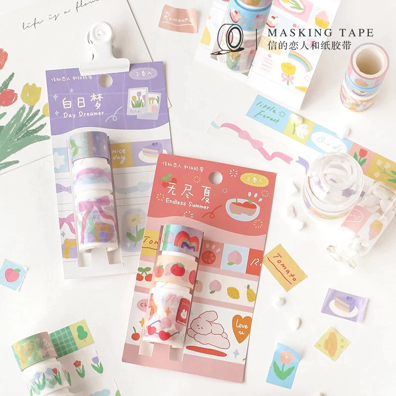 Giới thiệu Bộ 3 Băng Keo Trang Trí Chủ Đề Hoa Cỏ Dễ Thương Washi Tape 15-30MM*2M Cây Đầu To