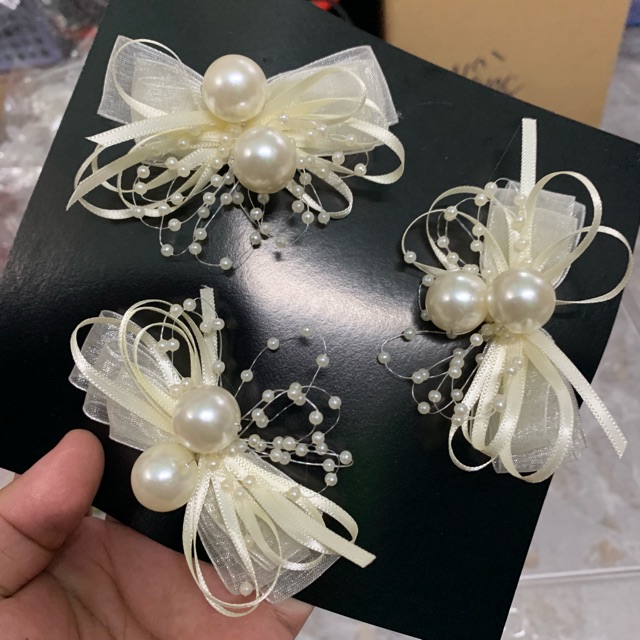 #bộcaitoc #caitocdep #caitoccodau bộ ba kẹp cài tóc cô dâu duy băng hạt trai trắng kem thích hợp cài tóc cô dâu cài tóc tiệc