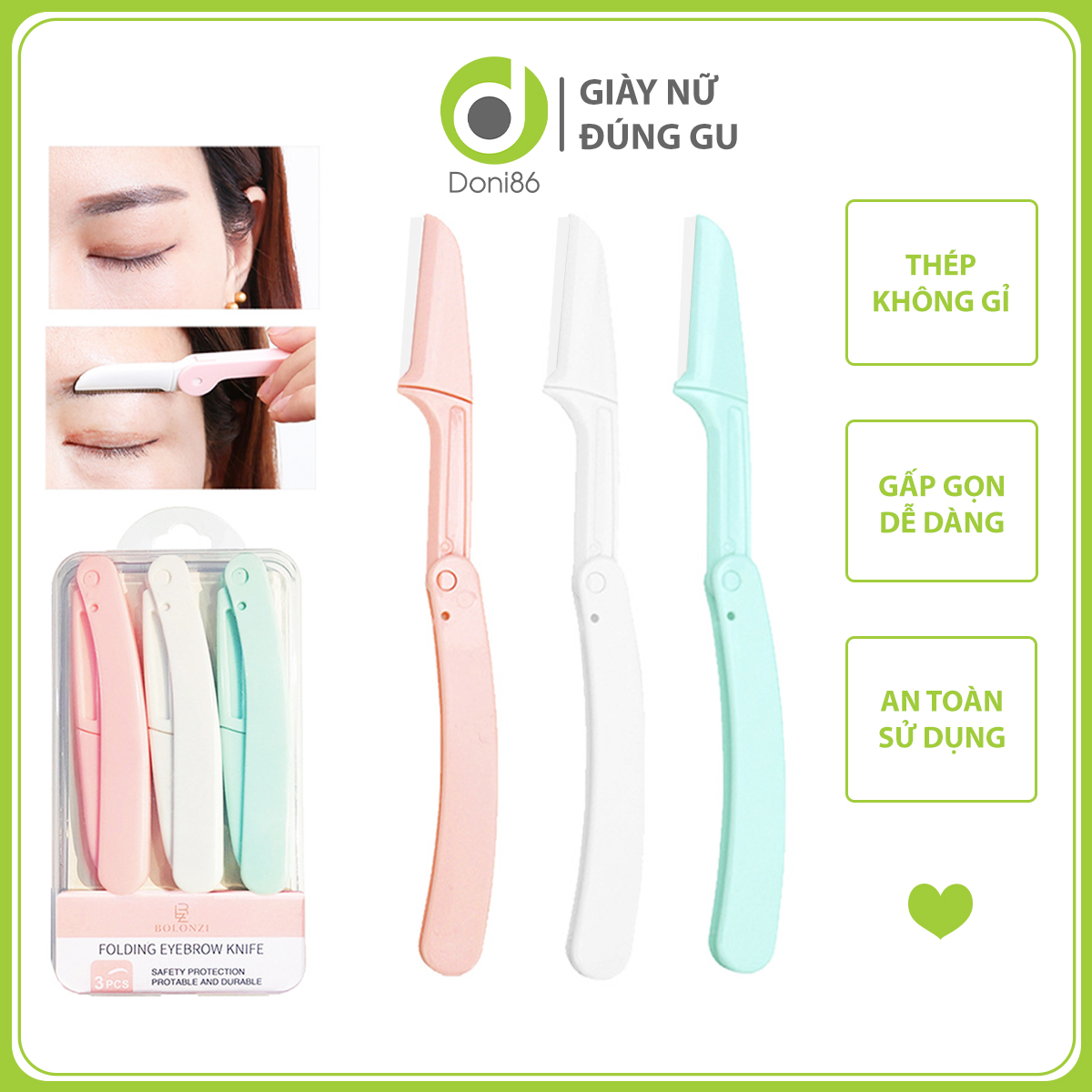 Nhu cầu trang điểm, làm đẹp của chị em ngày càng tăng cao và đa dạng. Làm đẹp, trang điểm không chỉ tôn lên các đường nét của gương mặt của chị em, mà còn giúp che đi những khuyết điểm . Nhưng việc trang điểm phù hợp thì không dễ dàng, chúng ta cần có những dụng cụ giúp việc trang điểm trở nên thuận tiện hơn. Dưới đây là BỘ 3 TỈA LÔNG MÀY là một dụng cụ làm đẹp được sử dụng để giúp cặp lông mày của bạn trong gọn gàng và sắc sảo hơn. BỘ 3 TỈA LÔNG MÀY được làm bằng chất liệu kim loại bền bỉ như không gỉ, giúp đảm bảo tính vệ sinh và độ an toàn khi sử dụng.