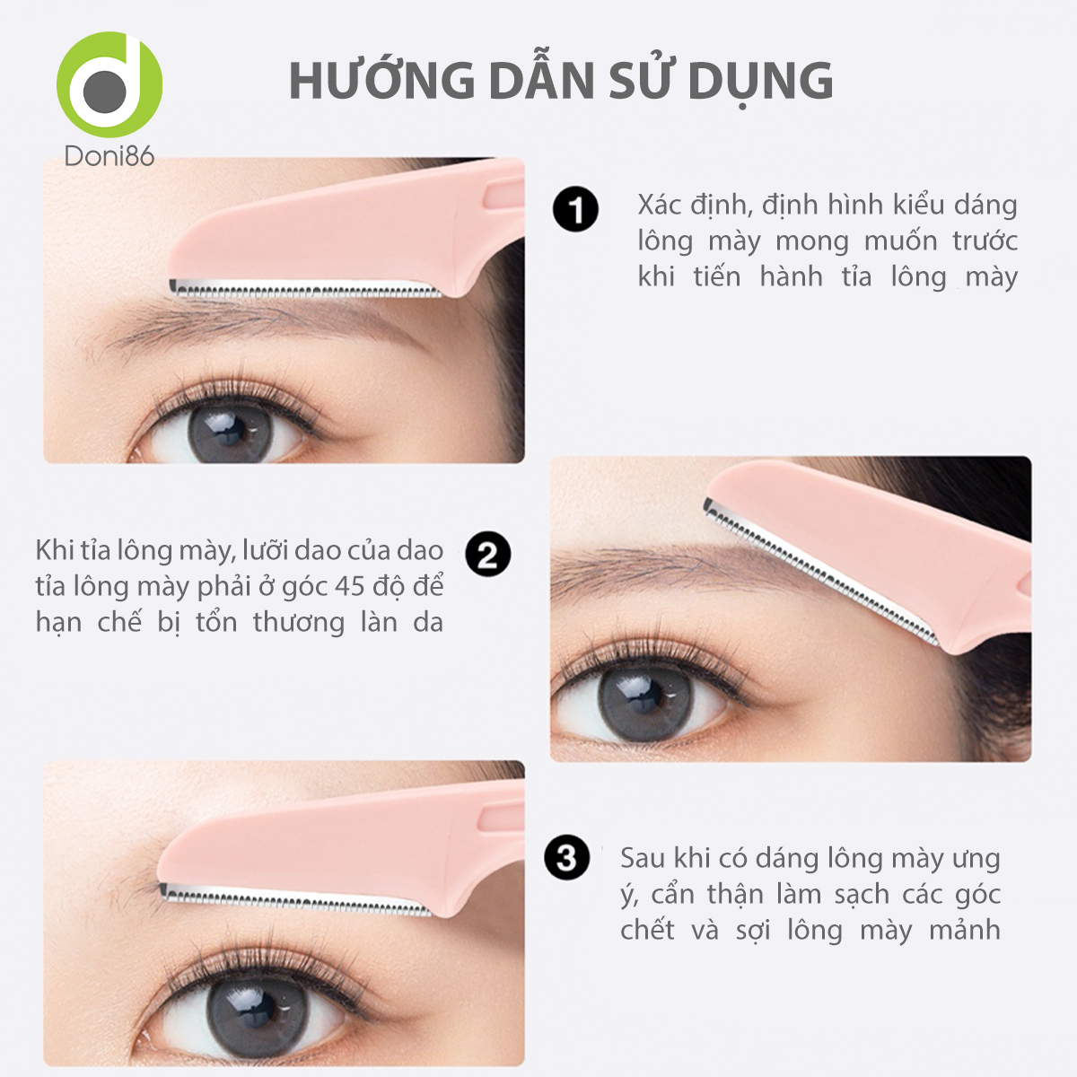 2. Khi tỉa lông mày, lưỡi dao của dao tỉa lông mày phải ở góc 45 độ so với da.