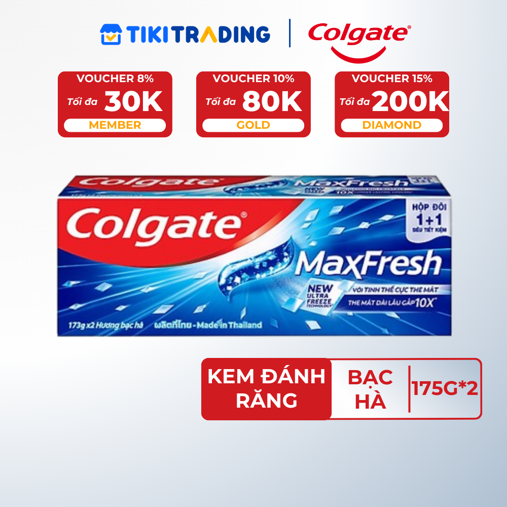 - Kem đánh răng Colgate MaxFresh hương bạc hà với các tinh thể the mát tự hòa tan, trộn lẫn trong kem sẽ mang đến cảm giác sảng khoái khi chải răng và hơi thở thơm mát suốt nhiều giờ.