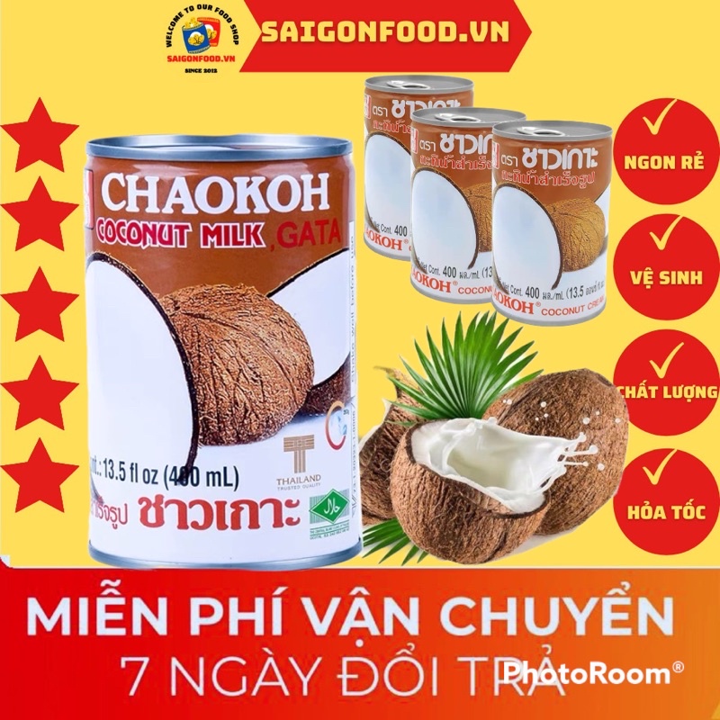 [3 Lon] Nước Cốt Dừa Nguyên Chất ChaoKoh Loại Nội Địa Thái Lan [Ko Chữ Việt] Ko Hoá Chất Ko Phẩm Thơm Béo Siêu Ngon An Toàn