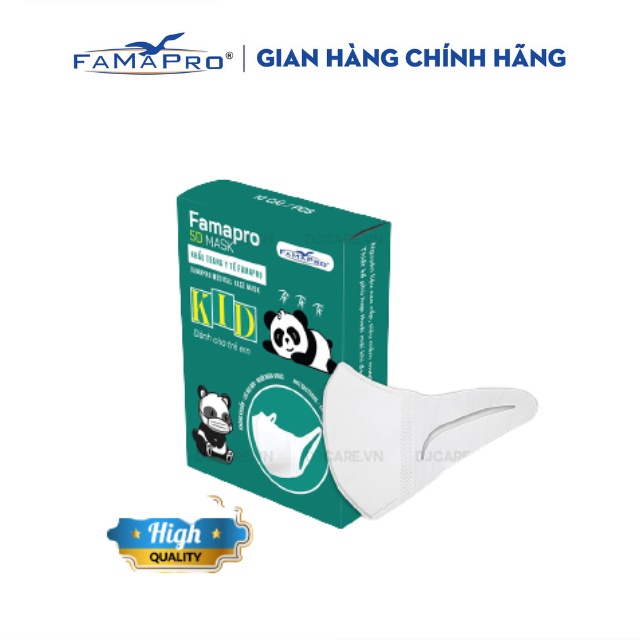 [5D MASK KID QUAI VẢI- HỘP 10 CÁI] Khẩu trang y tế trẻ em kháng khuẩn 3 lớp Famapro Kids.