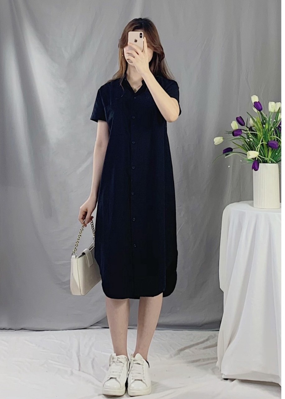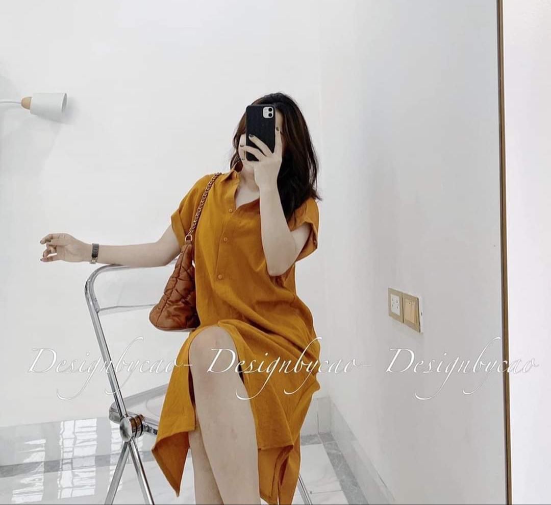 Váy Sơ Mi Tay Ngắn Phom Rộng Dáng Dài Chất Linen Thun Loại 1 Dày Dặn, Thoáng Mát