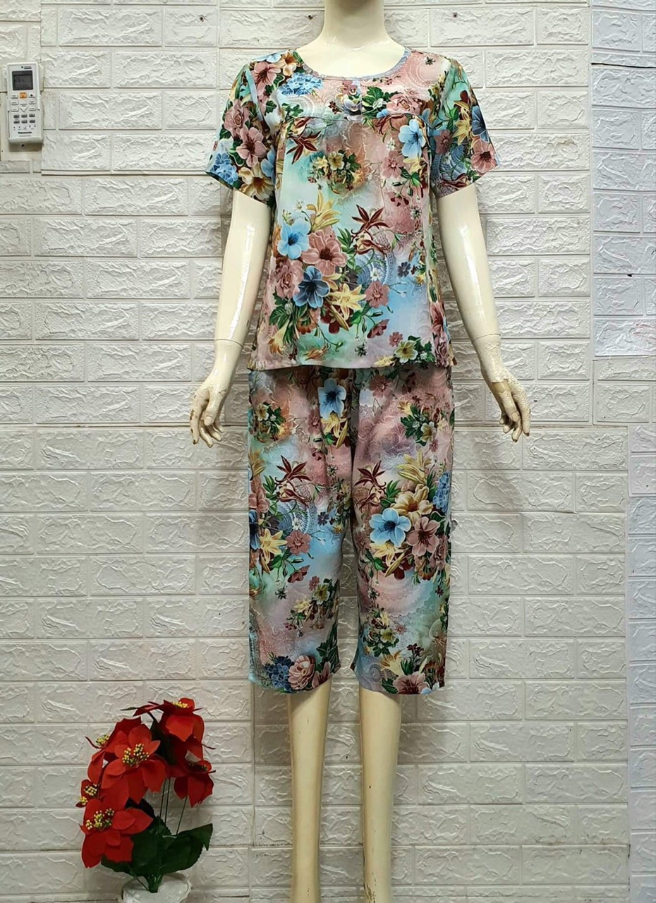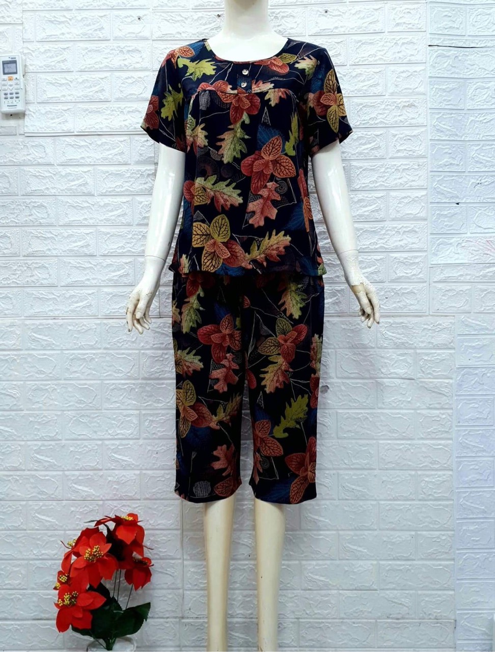 (40kg - 80kg) Đồ Bộ Mặc Nhà, Đồ Bộ Nữ Quần Lửng Tay Ngắn Tole Nhung Trung Niên Bigsize, Màu Số 1