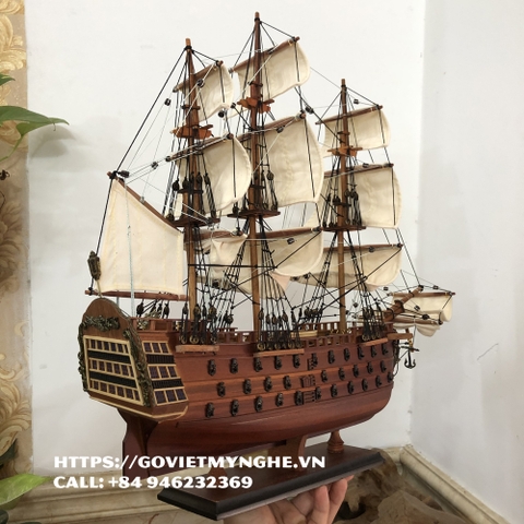 | Model | [Dài 46cm - chuẩn xuất khẩu] Mô hình thuyền gỗ thuyền trang trí tàu chiến cổ HMS Victory - Gỗ căm xe - Thân tàu dài 40cm - Buồm vải bố |