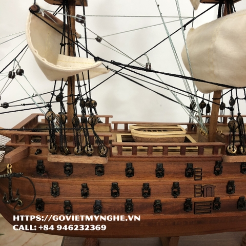 + Mô hình thuyền gỗ thuyền trang trí tàu chiến cổ HMS Victory được hoàn thành với hàng trăm giờ làm việc bởi các nghệ nhân lành nghề có trình độ kỹ thuật cao. Với bàn tay khéo léo, tỉ mỉ và cẩn thận, các nghệ nhân thủ công mỹ nghệ đã mô phỏng từ chiếc thuyền thực tế thành mô hình tàu thuyền gỗ, cùng các chi tiết như vỏ tàu, thân tàu, boong tàu, cột và cánh buồm, cũng như các trang trí khác...