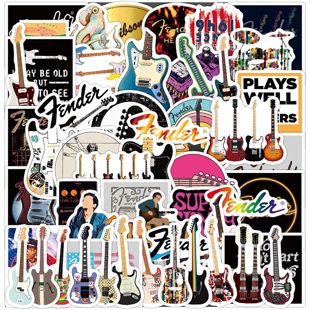 Giới thiệu Bộ 50 miếng dán sticker trang trí đàn guitar, ukulele, nón bảo hiểm, laptop... chủ đề Fender Xe hơi