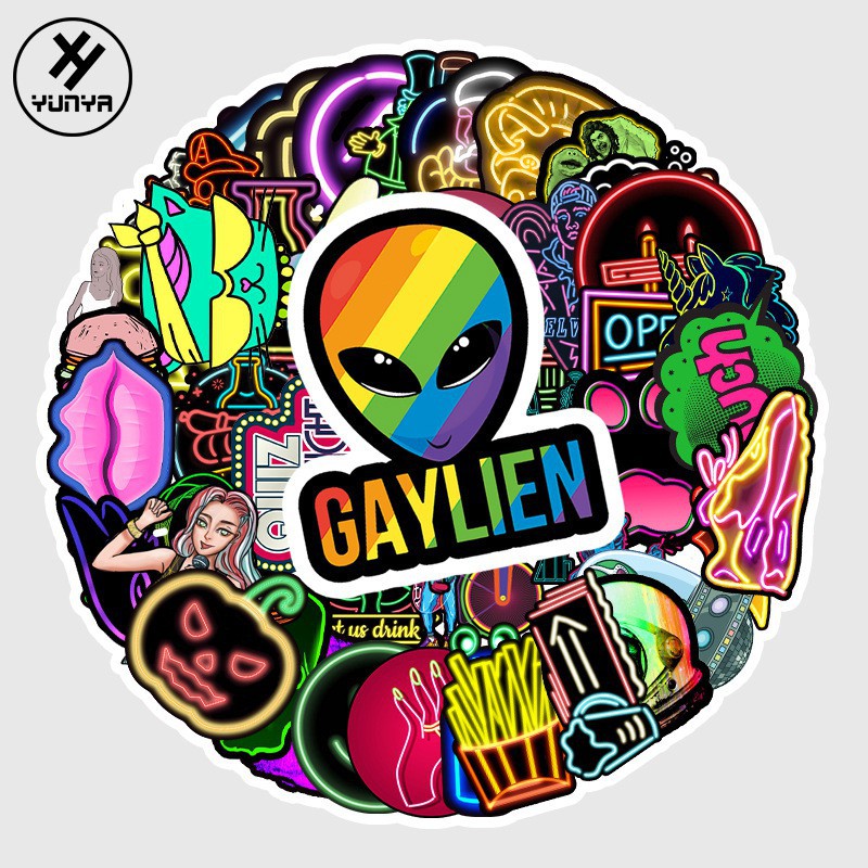 [50 STICKER neon] Bạn có thể dán vào mũ bảo hiểm, vali du lịch, xe, tấm trượt, hộp bút chì, điện thoại, máy tính, vv. Chống nắng và không thấm nước, thiết kế xe, trang trí thời trang