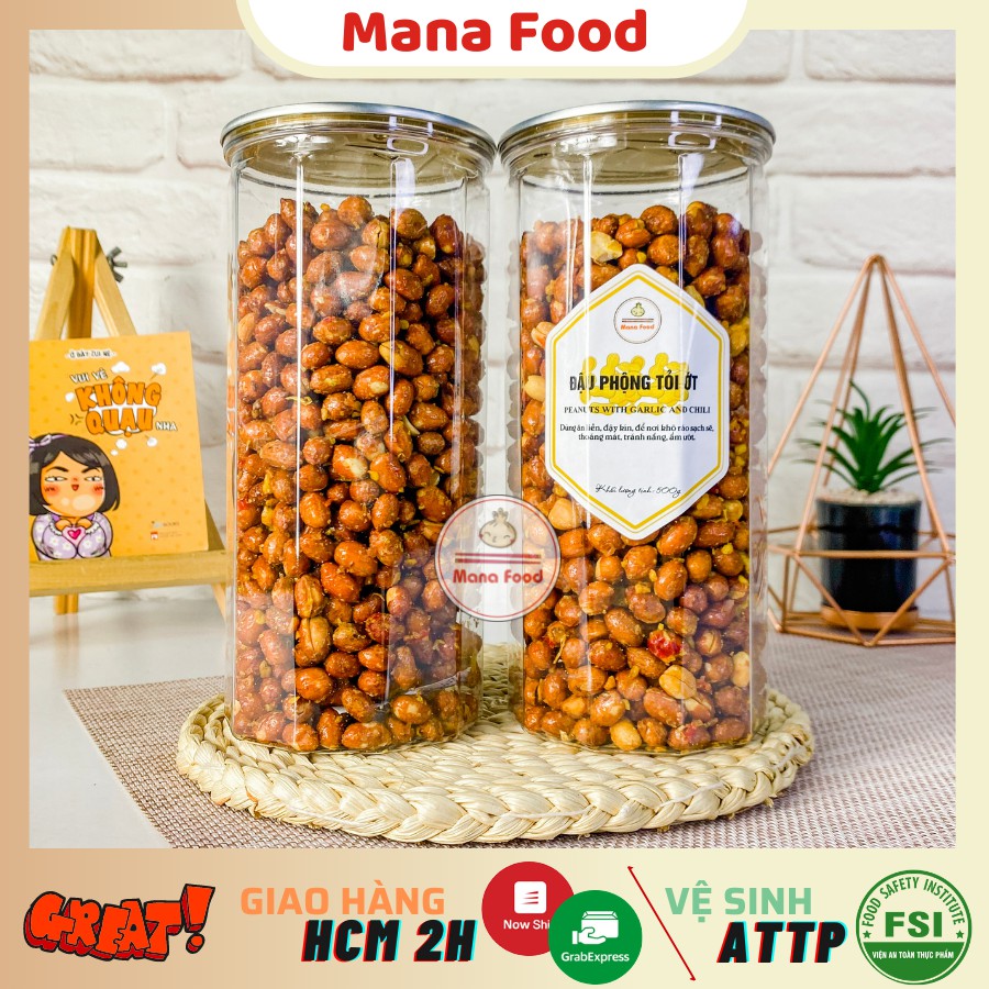 Quy cách sản phẩm: - Tên sản phẩm: Đậu Phộng Tỏi Ớt Mana Food - Khối lượng (gồm bao bì): 500G - Đóng gói: Lon pet (như hình) và đựng trong thùng giấy carton bảo vệ hàng hóa tốt và lại rất lịch sự. - Hạn sử dụng: 03 tháng (có in trên hũ)