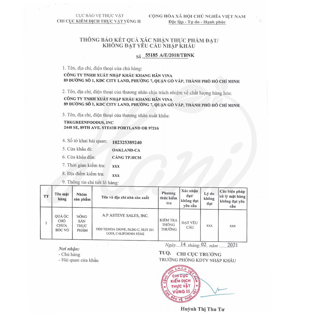 Nhân Óc Chó Mỹ Nhập Khẩu 100% - Hạn sử dụng: 12 tháng kể từ ngày sản xuất - Xuất xứ: Mỹ (Hàng nhập chính ngạch từ Mỹ, đầy đủ bộ hồ sơ nhập khẩu, VAT). - Cam kết hoàn tiền nếu bạn chưa hài lòng.