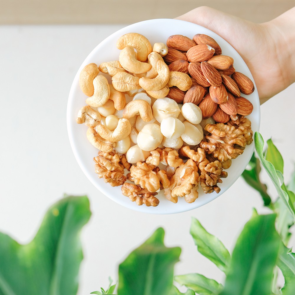 Thực phẩm và đồ uống > Đồ ăn vặt > Các loại hạt sấy khô || 500gr Hạt mix 4 hạt dinh dưỡng cao cấp (Óc chó, Hạnh nhân, Điều, Macca) Xanh Lá cam kết chất lượng loại A
