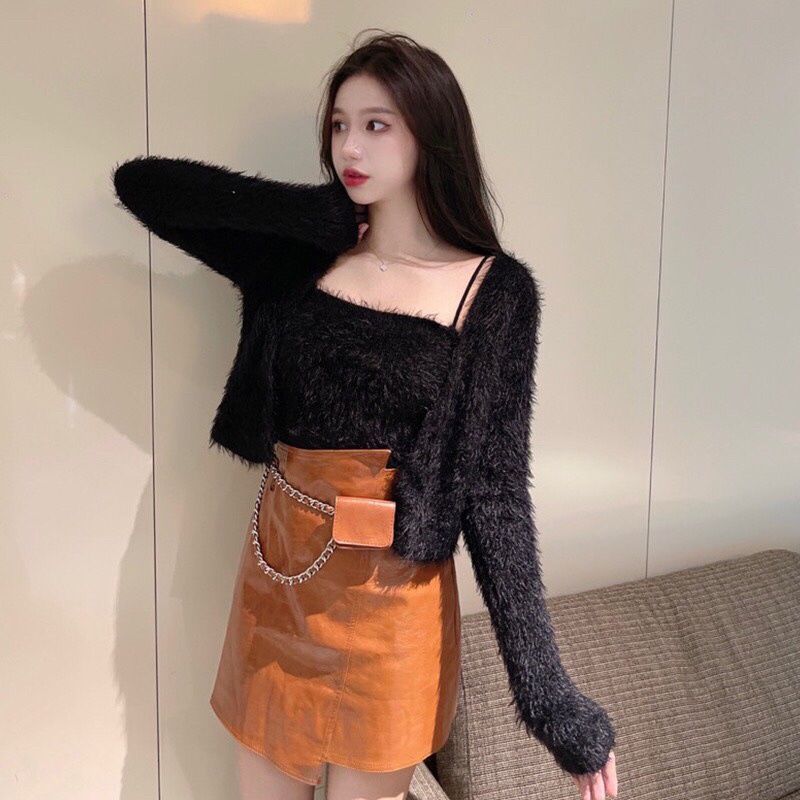 556. SET ÁO LEN LÔNG THỎ, ÁO CROPTOP DÂY KÈM ÁO KHOÁC CHOÀNG LÔNG SIÊU XINH HOT HITGiá NVB