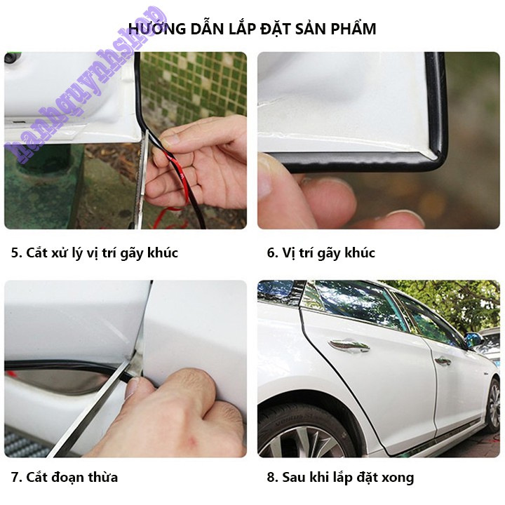 Hướng dẫn lắp đặt: - Làm sạch bề mặt mép viền cửa xe, cốp, nắp ca bô tại ví trị cần lắp đặt. - Bóc trước 1 đoạn ngắn mặt giấy bóng của dải băng keo 3M để ướm và căn chỉnh sản phẩm vào vị trí lắp đặt. - Tiến hành lắp đặt đến đâu thì bóc mặt giấy bóng của dải băng keo 3M đến đó. - Tại vị trí gấp khúc, sử dụng kéo cắt tạo hình chữ V để lắp đặt tránh bị phồng gây mất thẩm mỹ và dễ bong tróc. - Sau khi lắp đặt xong cắt đoạn thừa và sử dụng.