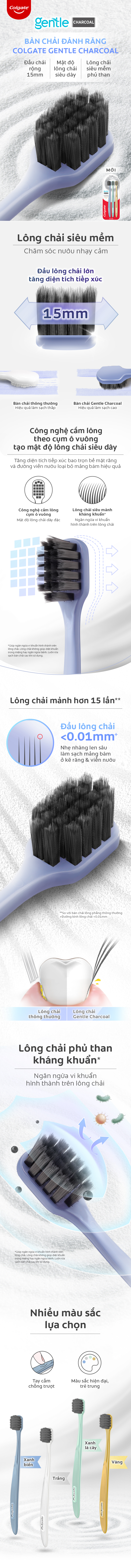 ● Lông chải phủ than hoạt tính kháng khuẩn, ngăn ngừa vi khuẩn hình thành trên bề mặt.