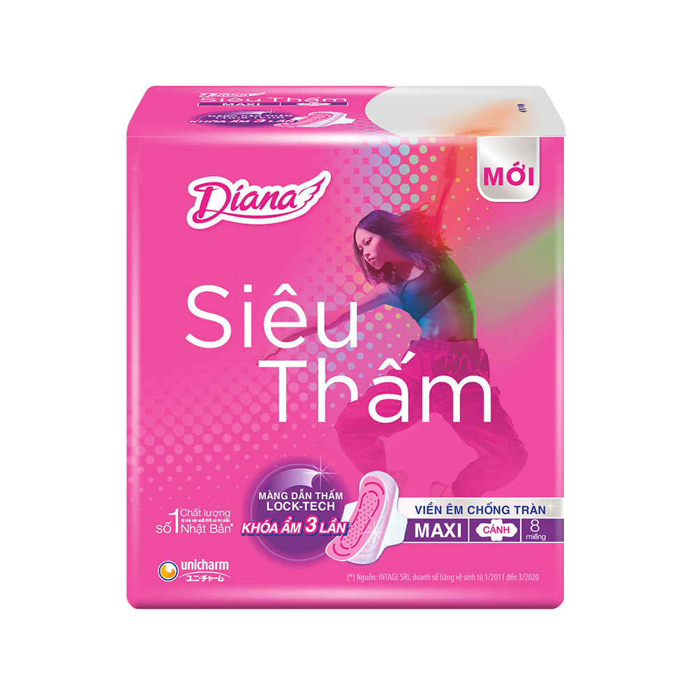 Băng vệ sinh Diana Siêu Thấm MAXI Cánh gói 08 miếng là loại băng vệ sinh đáp ứng các yêu cầu vừa mềm mại, vừa thấm hút tốt, mỏng nhẹ tối đa, êm mềm thoáng sạch cho da. Sản phẩm là sự lựa chọn tốt nhất dành cho phái đẹp sử dụng trong những ngày nhạy cảm vì đột phá với cấu trúc gập đa lớp giúp ngăn chất lỏng thấm lan sang 2 bên mà vẫn thật êm mềm.