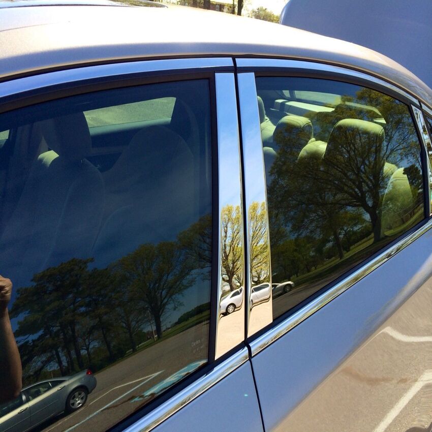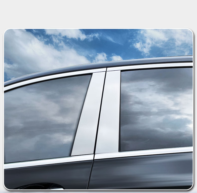 - Bộ nẹp cột cánh cửa bằng hợp kim nhôm bóng mờ, làm nổi bật phần cột B và C cửa xe dòng xe Mercedes E200 và E300
