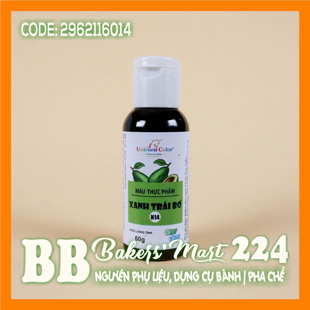 Giới thiệu 60gr - A14 Màu XANH TRÁI BƠ thực phẩm làm bánh dạng NƯỚC SIRO Unicorn 60gr - A14 Màu XANH TRÁI BƠ thực phẩm làm bánh dạng NƯỚC SIRO Unicorn