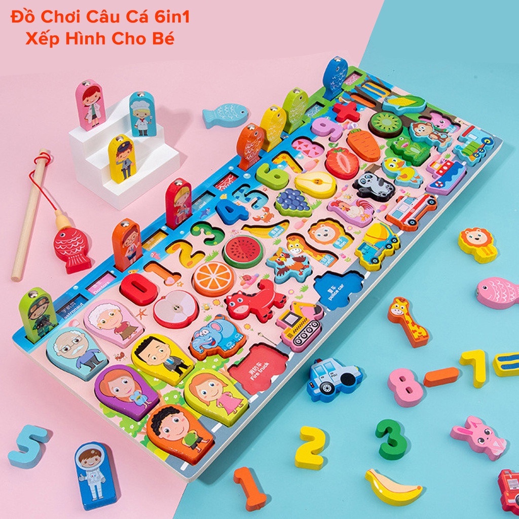 Bộ độ chơi câu cá ghép chữ số, ghép hình Loại 6in1 – có 61 chi tiết (Tích Hợp 6 trò chơi kỹ năng trong 1) để các bé học và chơi được tốt hơn