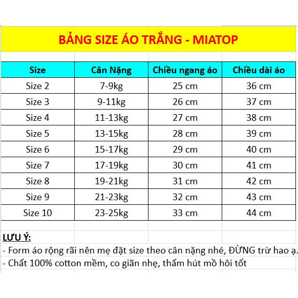 Giới thiệu [7-25kg] Áo ngắn tay cổ tròn chất cotton mềm, thấm hút mồ hôi tốt cho bé trai/ bé gái - Miatop (hình thêu ngẫu nhiên) - S9 (21-23kg)