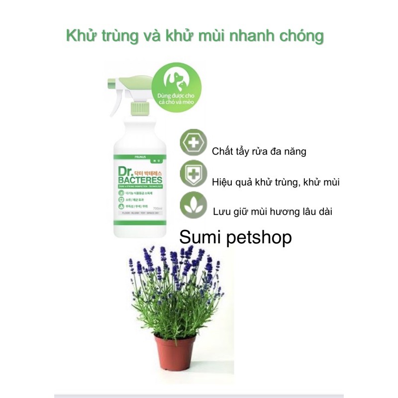 Giới thiệu 700mil PRUNUS Frangrance Bacteres xịt khử mùi diệt khuẩn cao cấp nhập khẩu Hàn Quốc cho chó mèo
