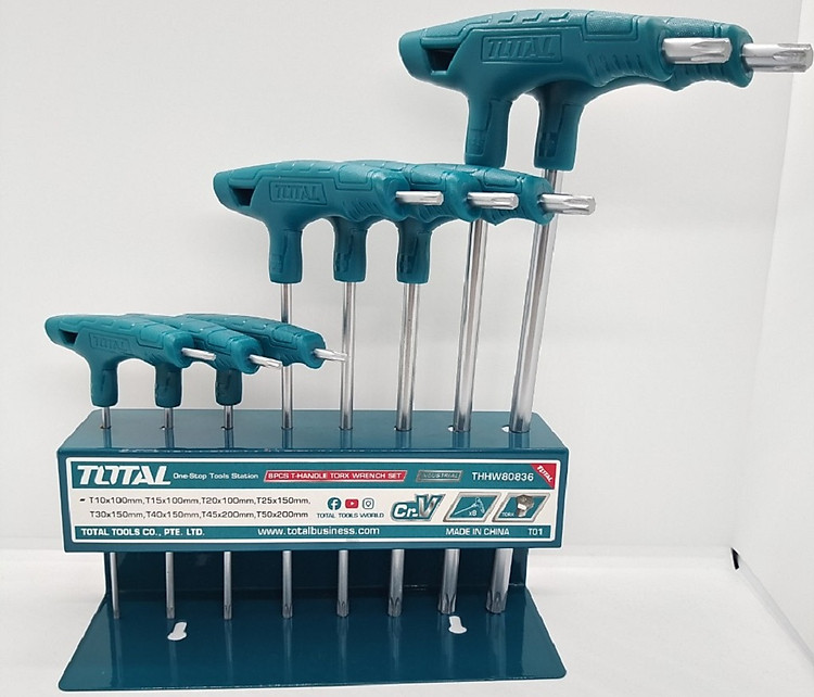 Bộ 8 chìa lục giác bông có tay cầm chữ T chắc chắn TOTAL THHW80816 8 chi tiết được hoàn thiện chất lượng cao, tay cầm chắc chắn khi sử dụng.